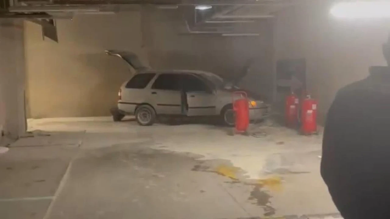 Kapalı otoparktaki LPG'li otomobil yandı