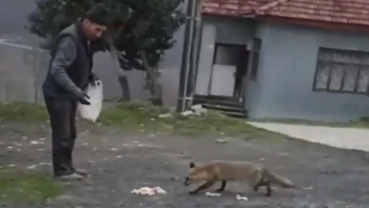 Kendisine verilen tavuk parçalarını alan tilki ise gözden kayboldu. O anlar ise cep telefonu ile görüntülendi.