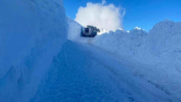 Kar kalınlığının 2 metreyi bulduğu bölgede yol açma çalışması