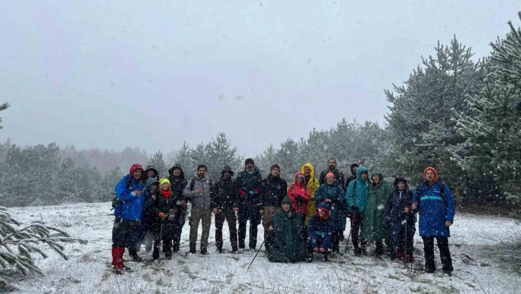 Kar yağışı eşliğinde 13 kilometre yürüyüş