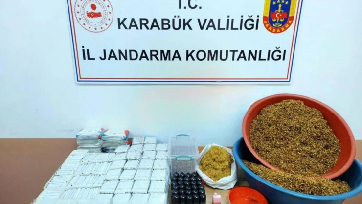 Karabük'ün Safranbolu ilçesinde jandarma ekiplerinin düzenlediği operasyonda 8 bin 700 adet içi doldurulmuş makaron ile 6 bin 600 gram tütün ele geçirildi.