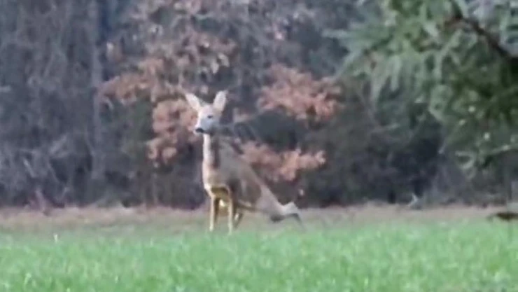 İlçede ormanda gezintiye çıkan vatandaş, açık alanda karacayı fark etti. Ağacın arkasına saklanan vatandaş, cep telefonunun kamerasıyla kayda girip karacayı görüntüledi. Güzelliğiyle dikkat çeken karaca, vatandaşın olduğu yöne bir süre baktıktan sonra uzaklaştı.