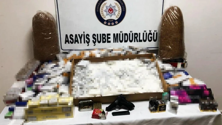 Edinilen bilgiye göre, İl Emniyet Müdürlüğü Asayiş Şube Müdürlüğü ve Kaçakçılık Organize Suçlarla Mücadele Şube Müdürlüğü ekipleri il merkezinde E.G.’nin iş yerine operasyon düzenledi. Operasyonda, 1 adet ruhsatsız tabanca ve tabancaya ait şarjör, 42 adet mermi, 6 bin 978 adet makaron, 12 paket bandrolsüz sigara, 240 dal sigara, 3 adet cinsel içerikli macun ele geçirildi.