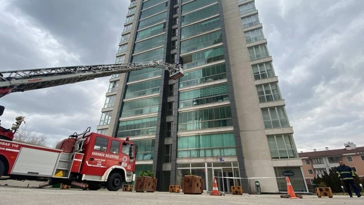 Karabük’te yüksek binalardaki yangın ve tahliye eğitimi amacıyla 16 katlı sitede tatbikat gerçekleştirildi.