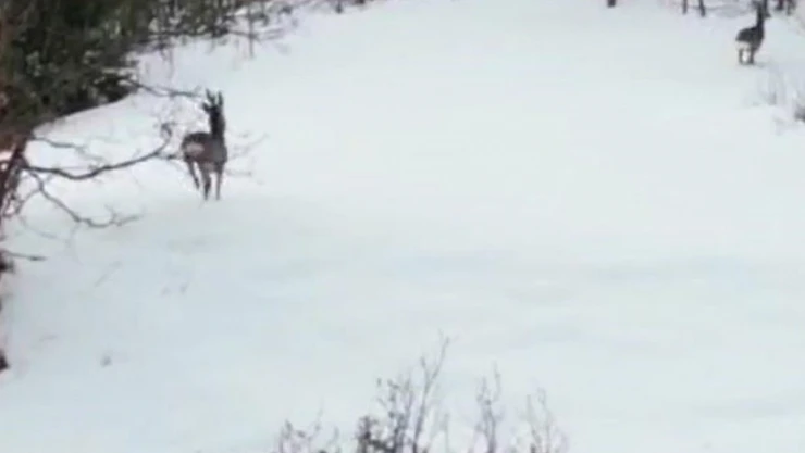 Ardahan'ın Posof ilçesinde ormanlık alanda iki karaca koşarken dron kamerasına yansıdı. Karacaların karla kaplı ormanlık alanda koşarak uzaklaşması dron kamerasınca kaydedildi.