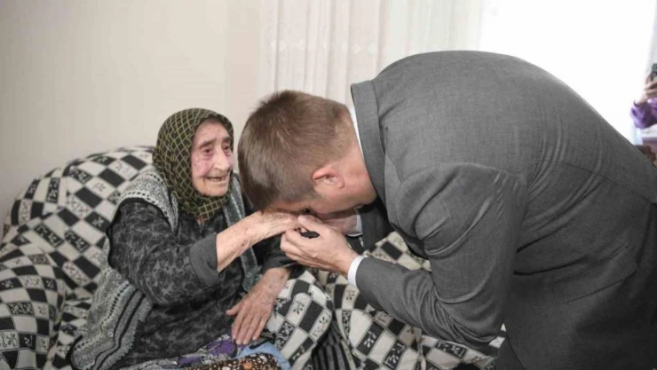 Karaman Valisi Hüseyin Engin Sarıibrahim, eşi Hatice Sarıibrahim ile birlikte, Cumhuriyet’in asırlık çınarları 103 yaşındaki Emine Kocaoğlu ve 101 yaşındaki Ahmet Yanık’ı evlerinde ziyaret etti.