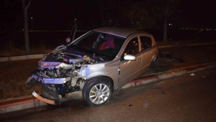 Karaman'da kontrolden çıkan otomobil aydınlatma direğine çarptı