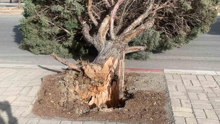 Karaman'da şiddetli rüzgâr ağacı kökünden kırdı