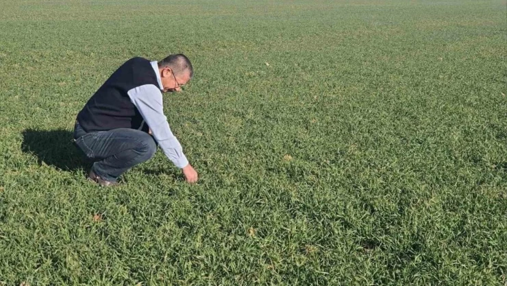 Karapınar Ziraat Odası Başkanı Durmuş Üner ve odanın teknik danışmanı Prof. Dr Süleyman Soylu hububat ekim alanlarındaki bitki gelişimlerini yerinde inceledi.