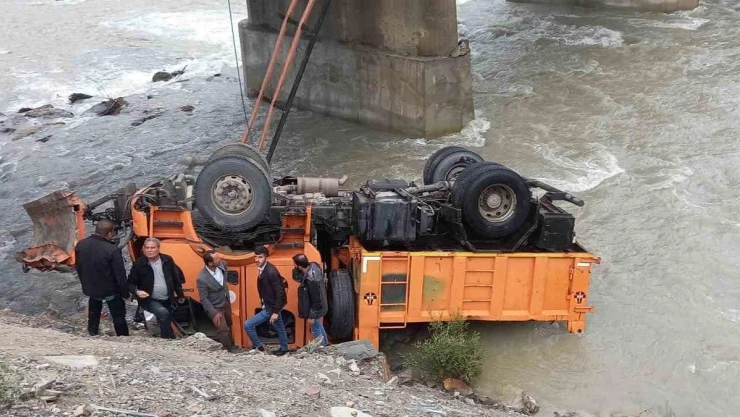 Karayollarının iş makinesi Zap Suyu'na yuvarlandı: 3 yaralı