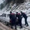 Mersin’in Erdemli ilçesinde kar yağışı nedeniyle yolda kalanların yardımına karayolları ile jandarma ekipleri yetişti. Jandarma personelleri karda kalan bazı araçları iteleyerek kurtardı.