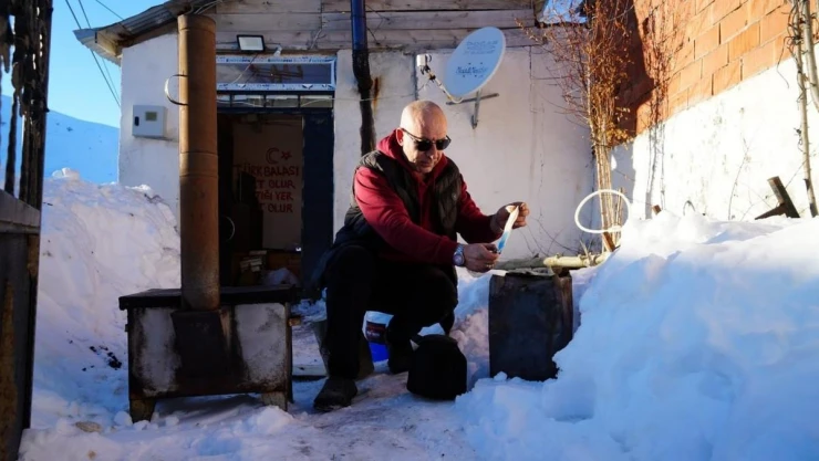 Köy evinde bulunan sobayı yakarak işe koyulan Mutlu, "Köydeki yaşam şartları zor, hava soğuk sobanın üzerine güğümleri koyduk çay demleyeceğiz. Bu zor şartların, bu soğuk havanın en güzel yanı ise soba üzerinde demlenen çayı içmek" dedi. Çayını içtikten sonra mangal yakan Mutlu, soğuk kış günlerini bu şekilde geçirdiklerini ifade ederek, "Bizim de soğuk kışlarımız bu şekilde geçiyor. Bu havaları çile olarak görmüyoruz kar, kış ve kara demlik bizim en büyük tutkumuz" dedi.