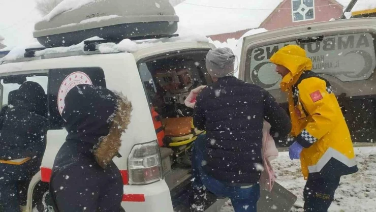Kardan yolu kapanan köyde rahatsızlanan çocuk için ekipler seferber oldu