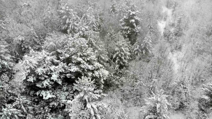 Tekçam Geçidi’nde, adeta kartpostallık görüntüler oluştu. Karla kaplanan ve sisin de etkili olduğu 1900 rakımlı Tekçam Geçidi, dron ile havadan görüntülendi.