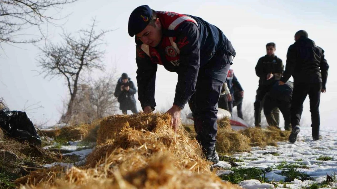 Bolu’da Doğa Koruma ve Milli Parklar Şube Müdürlüğü ile jandarma ekipleri, yiyecek bulmakta zorlanan yılkı atları için karla kaplı yaylaya saman ve besi yemi bıraktı.