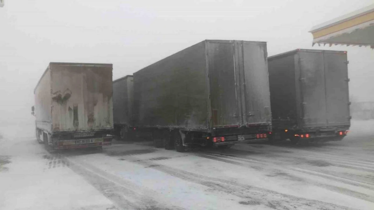 Kars giriş ve çıkışlarında polis sürücüleri dikkatli olmaları konusunda uyarırken yolda ilerlemekte güçlük çeken tır sürücüleri akaryakıt istasyonlarında beklemek durumunda kaldı.