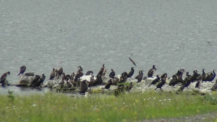 Kars Baraj Gölü’nün etrafına yuvalarını yapan kuşlar, uçsuz bucaksız gölde hem avlanıyor, hem de yavrularını sağlıklı bir şekilde büyütüyor.