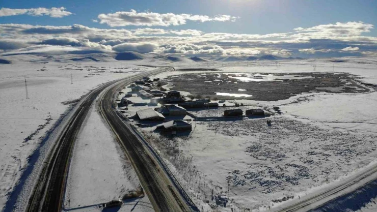 Öte yandan Hanlar mevkiinde bulunan evler kar altında kalırken, hemen evlerin sonunda bulunan Çalı Gölü ise kısmen doldu. Kentte hava sıcaklığı eksi 7 derece ölçüldü.