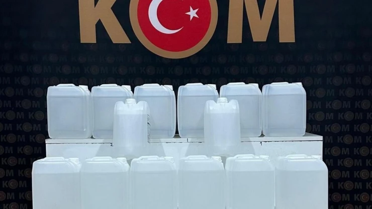 KOM ekiplerince yapılan çalışmalarda, 20 şişe halinde toplam 100 litre sahte alkollü içki yapımında kullanılan etil alkol ele geçirilerek muhafaza altına alınırken, olayla ilgili olarak 1 kişi gözaltına alındı.