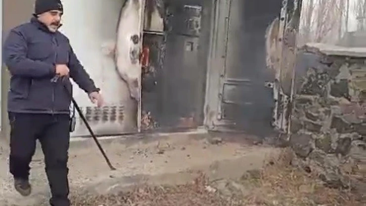 Kars'ta alev alev yanan trafo söndürüldü