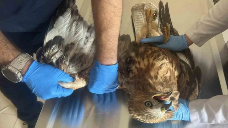 Kars'ta yol kenarında yaralı olarak bulunan Kızıl Şahin tedavi altına alındı.