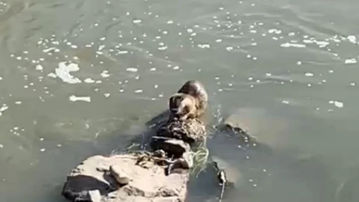 Kars'ta nesli tükenme tehlikesi altında bulunan su samuru cep telefonuyla görüntülendi.