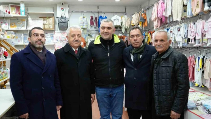 AK Parti Kars Milletvekili Adem Çalkın, 65. Hükümette Ulaştırma, Denizcilik ve Bakanı Ahmet Arslan, AK Parti İl Başkanı Muammer Sancar, MHP İl Başkanı Tolga Adıgüzel, esnaf ve vatandaşları ziyaret ederek yarın yapılacak seçim öncesinde destek istedi.