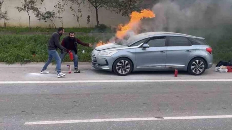 Kartal'da yanan aracı söndürmek için vatandaşlar seferber oldu