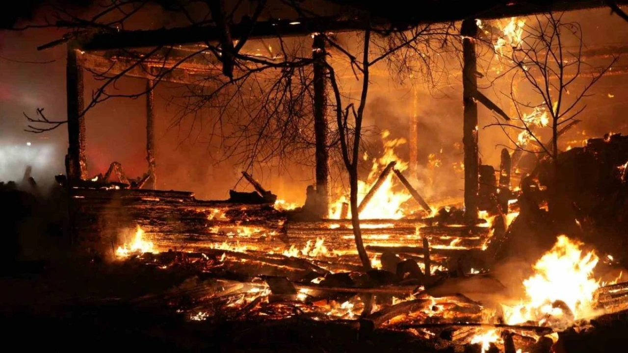 Yangında, ev ile birlikte traktör, ambar, garaj, kümes ve ahır yanarak kullanılamaz hale geldi.