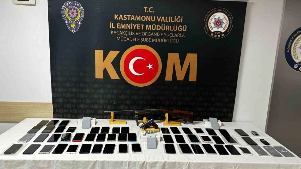 Edinilen bilgiye göre, Kastamonu İl Emniyet Müdürlüğü Kaçakçılık ve Organize Suçlarla Mücadele (KOM) Şube Müdürlüğü ekiplerince yapılan çalışmalar neticesinde, il merkezinde iki şahsın kaçak cep telefonu bulundurduğu öğrenildi. Ekipler tarafından evde yapılan aramada 60 adet çeşitli markalarda gümrük kaçağı akıllı cep telefonu, 1 adet 7,65 milimetre çapında ruhsatsız tabanca, 1 adet ruhsatsız tüfek ve 7 adet fişek ele geçirildi.