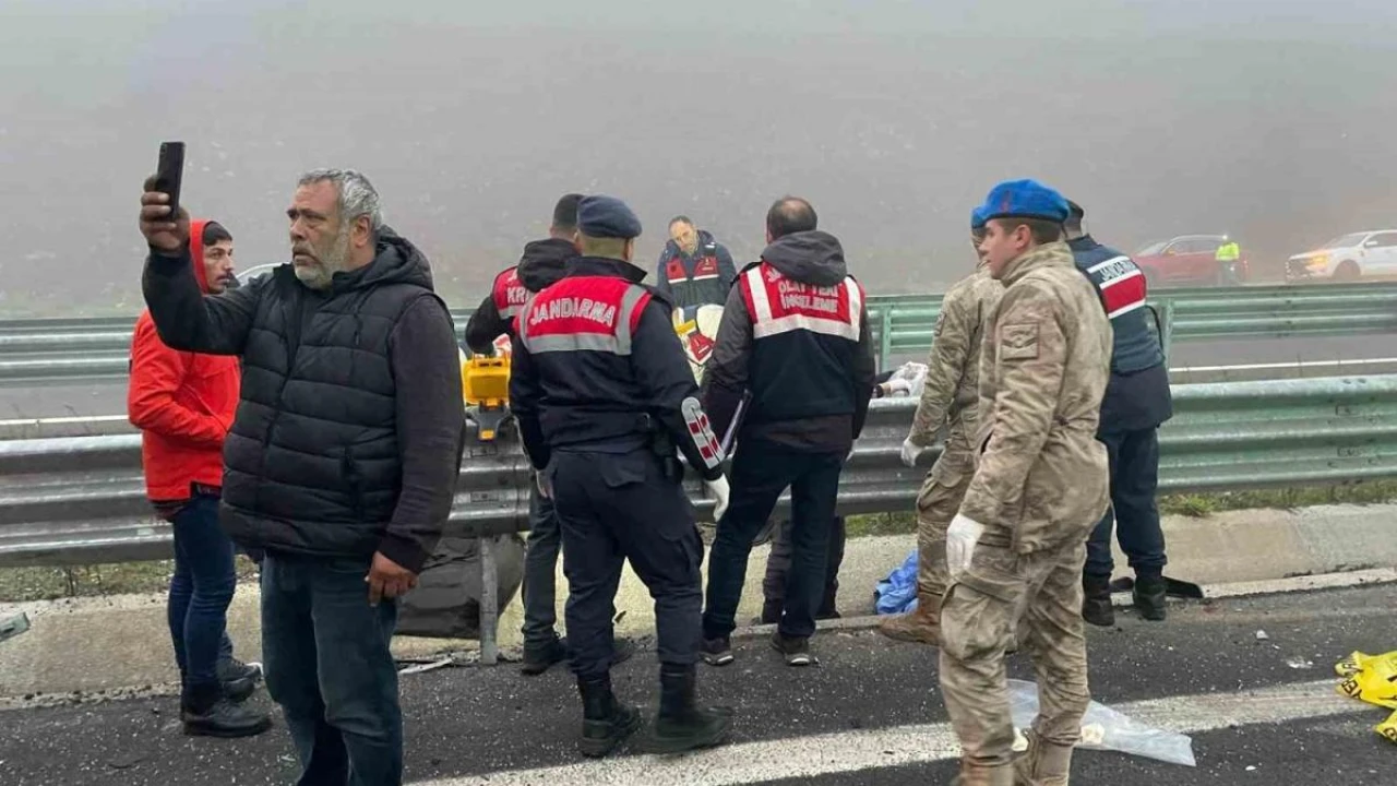 10 kişiye mezar olan katliam gibi kaza, 28 Aralık Perşembe günü saat 04.50 sıralarında Kuzey Marmara Otoyolu Sakarya geçişi Taşkısığı mevkiinde meydana geldi. Yoğun sisin etkili olduğu bölgede 3’ü otobüs toplam 7 aracın karıştığı kazada 10 kişi hayatını kaybetmiş, 63 kişi de yaralanmıştı. Kaldırıldıkları çeşitli hastanelerde tedavileri tamamlanan 45 yaralı taburcu edilirken, olayın ardından gözaltına alınan 7 sürücüden 3’ü "Taksirle birden fazla kişinin ölümüne ve yaralanmasına sebep verme" suçuyla tutuklanarak cezaevine gönderildi. Sabahın erken saatlerinde meydana gelen ve ortalığın adeta savaş alanına döndüğü kazada tutuklanan tır sürücüsü O.K.’nin olay yerinde cep telefonuyla görüntü çektiği anlar ortaya çıktı.