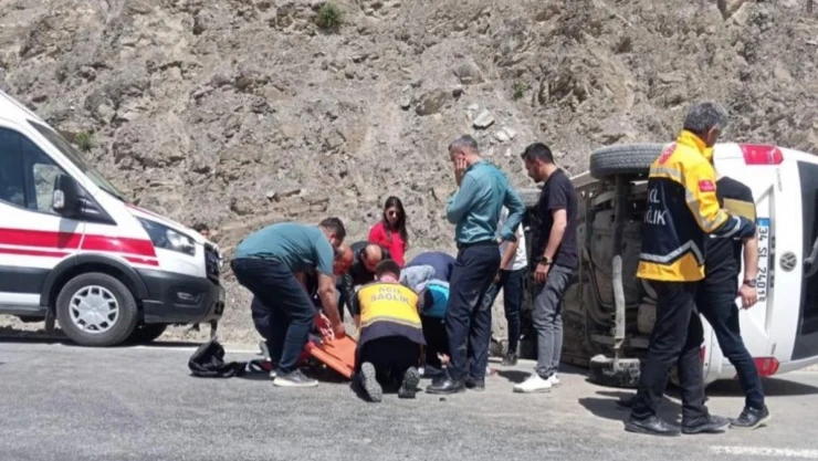 Kayanın isabet ettiği araç devrildi: 1 yaralı
