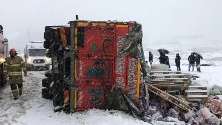 Kaza, Tunceli-Elazığ karayolu üniversite çıkışında meydana geldi. Edinilen bilgiye göre, Tunceli merkez yönüne gitmekte olan 24 AL 852 plakalı sürücüsü öğrenilemeyen TIR, kayganlaşan yolda aynı yönde seyir halinde olan 23 ABJ 289 plakalı özel otomobilin üzerine devrildi. Meydana gelen kazada TIR ve özel araç sürücüsü yaralanırken olay yerine 112, polis, AFAD ve itfaiye ekipleri sevk edildi. Ekiplerin olay yerinde yaptığı ilk müdahalenin ardından yaralılar, ambulansla Tunceli Devlet Hastanesi’ne kaldırılarak tedavi altına alındı.