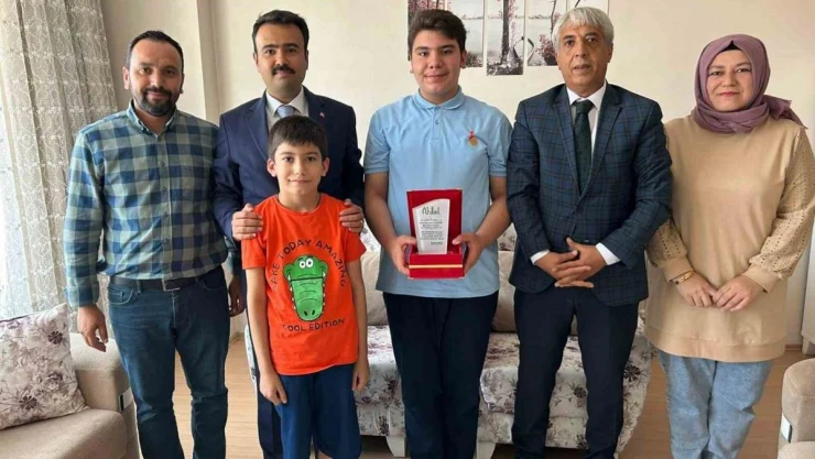 Bitlis'in Ahlat Kaymakamı Batuhan Bingöl, LGS sınavında 500 tam puan alarak Türkiye birincisi olan Yusuf Arda Akyürek'ü evinde ziyaret ederek tam altınla ödüllendirdi.