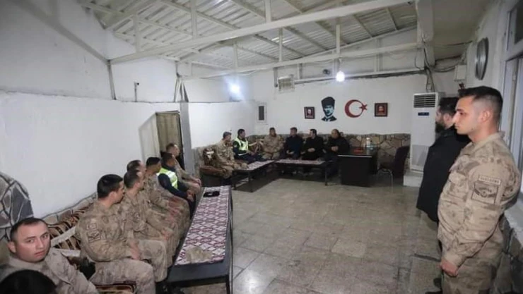 Yeni yılla giren Mehmetçik’i yalnız bırakmayan Çukurca Kaymakamı Mert Kumcu, Köprülü ve Kiyaris Jandarma Uygulama Noktalarını ziyaret ederek, görevi başındaki kahraman jandarmalarla yeni yıla birlikte girdi.