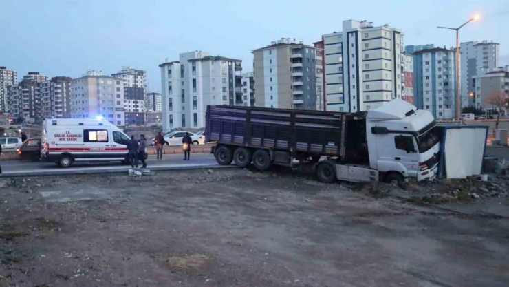 Kayseri'nin Melikgazi ilçesinde kontrolden çıkan tır, refüjdeki ağaçları ve aydınlatma direğini devirdikten sonra konteynıra çarptı. Kazada sürücü yaralanırken, inşaata ait olan konteynırda kimsenin bulunmaması faciayı önledi.