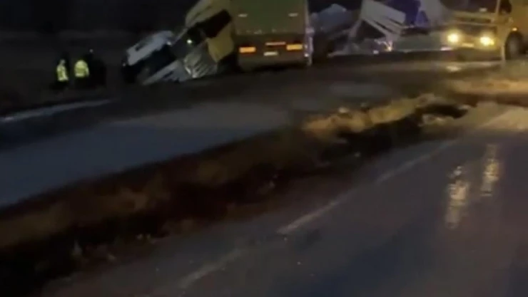 Kayseri'de makaslayan tır karşı şeride geçti: 3 tır birbirine girdi, 3 kişi yaralandı