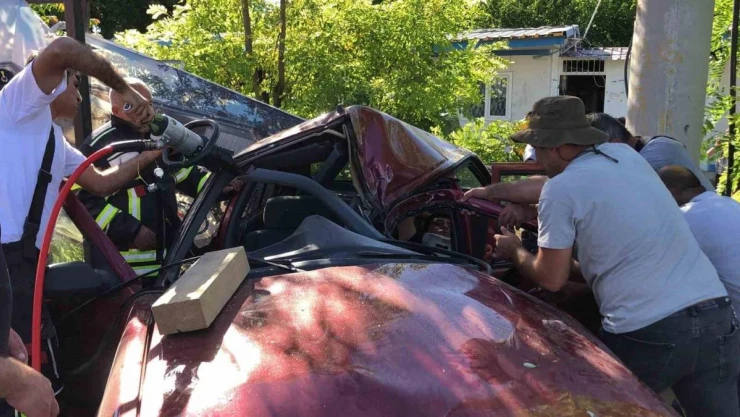 Kazada sıkışan sürücü 1 saatlik çalışmayla kurtarıldı