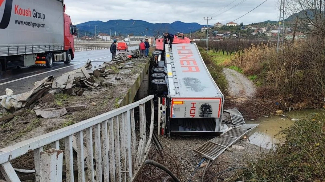 Sakarya'nın Pamukova ilçesi D-650 kara yolunda kontrolden çıkan tır, bariyerleri aşarak yol kenarına devrildi. Kazayı gören bir kişi ise o anları adeta bir spiker gibi anlattı.