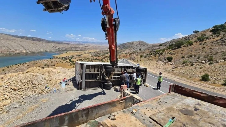 Kemaliye'de tır devrildi: 1 yaralı