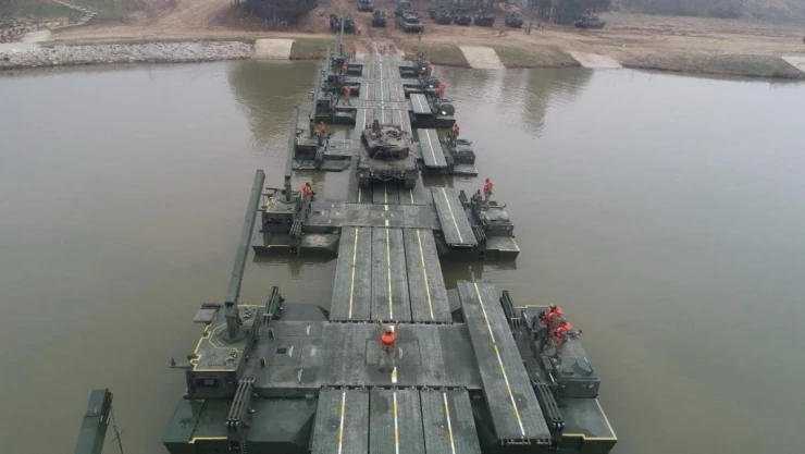 Gerçeği aratmayan eğitimde, Türk yapımı olan "Samur" karadan ilerleyip, suya girerek kısa süre seyyar köprü haline geldi. Bu seyyar köprüler kısa sürede tank ve tekerlekli askeri araçların karşı kıyıya geçişini sağladı.