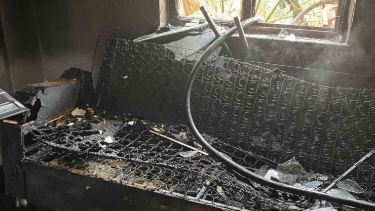 Bölgeye gelen itfaiye ekiplerinin müdahalesi ile yangın söndürülürken, ev kullanılmaz hale geldi.