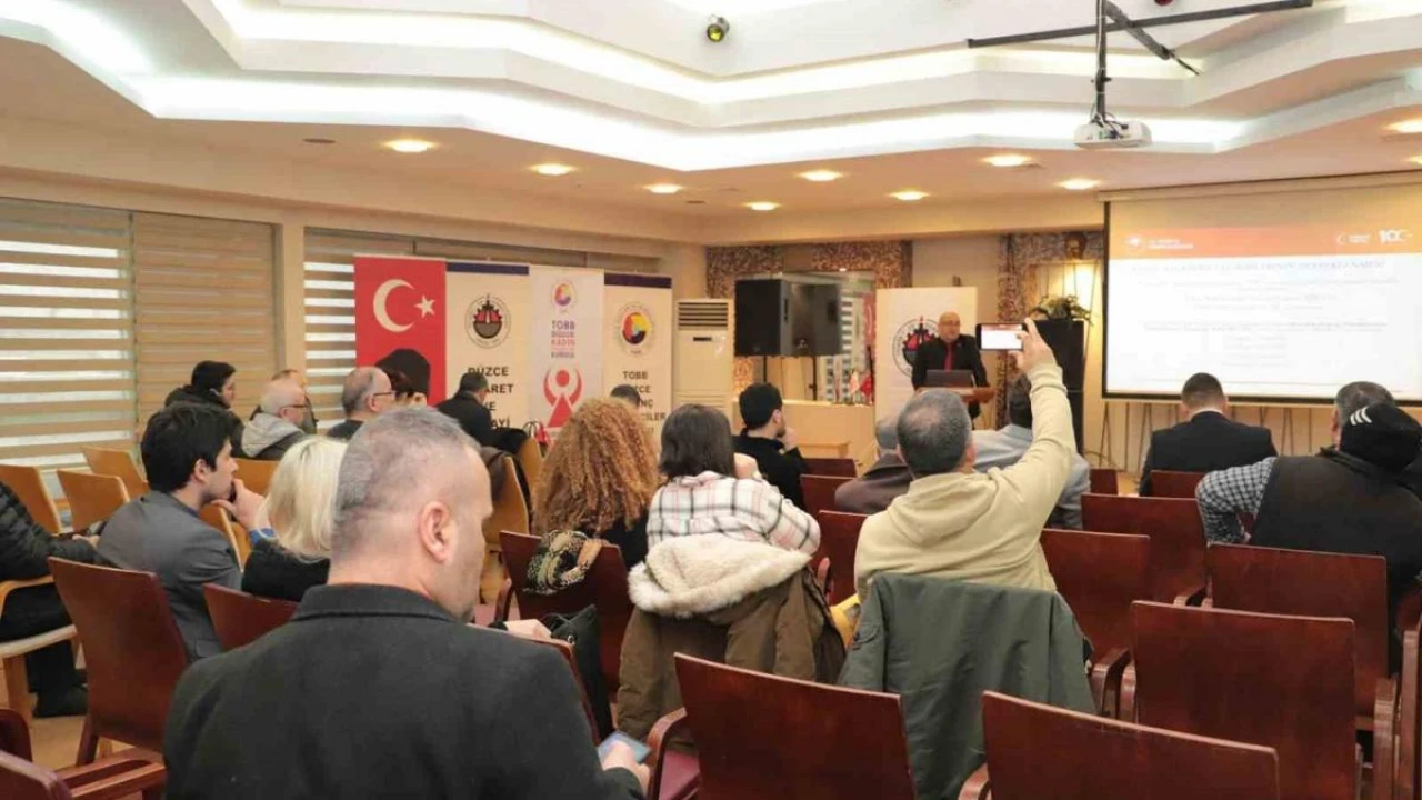 Düzce Ticaret ve Sanayi Odası’nda düzenlenen bilgilendirme toplantısına; Düzce Ticaret ve Sanayi Odası Genel Sekreter Yardımcısı Engin Çavuş, Düzce İl Tarım ve Orman Müdürü Esra Uzun, Kırsal Kalkınma ve Örgütlenme Şube Müdürü V. Osman Avcı, İl Tarım ve Orman Müdürlüğü Ziraat Mühendisi Mustafa Kayabaş, üreticiler ve çiftçiler katılım sağladı.
