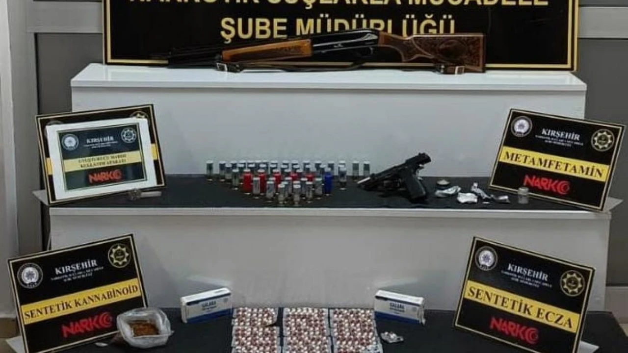 Kırşehir İl Emniyet Müdürlüğü Narkotik Suçlarla Mücadele Şube Müdürlüğünce Kırşehir Cumhuriyet Başsavcılığı koordinesinde sokak satıcılarına yönelik operasyon başlatıldı. Yapılan operasyonda hava aracı (dron) ve narkotik madde arama köpekleri de kullanıldı. Çok sayıda emniyet personelinin katıldığı operasyonda eş zamanlı olarak şüpheli şahıslara ait ikamet, iş yeri ve araçlarda arama yapıldı. Yapılan aramalarda; 360 sentetik ecza, 97 gram çeşitli uyuşturucu madde, 1 adet hap, 2 tüfek, 57 fişek, 1 tabanca, 1 şarjör, 1 tabanca fişeği ile 3 cam aparat ele geçirildi.
