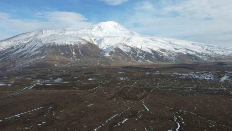 Kış ayı olmasına rağmen Ağrı Dağı eteklerine kar yağmadı