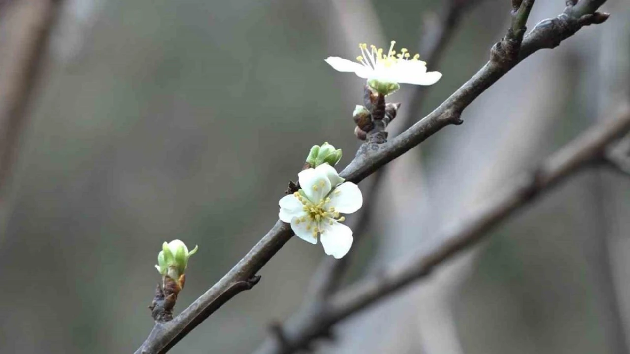 Kış bitmeden güneşi gören erik ağacı çiçek açtı