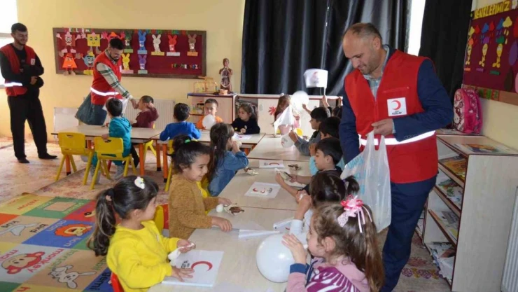 Muş'un Varto Kızılay Şube Başkanı Sezgin Yonat, Kızılay Haftası etkinlikleri çerçevesinde ana sınıfı öğrencileriyle bir araya geldi.