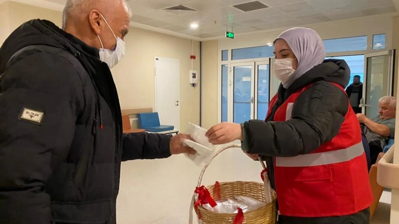 Hijyen Haftası dolayısıyla Genç Kızılay Gönüllüleri ve Düzce Kızılay Kadın Kolları, Düzce Üniversitesi Tıp Fakültesi Hastanesi’nde maske dağıtımı yaptı.