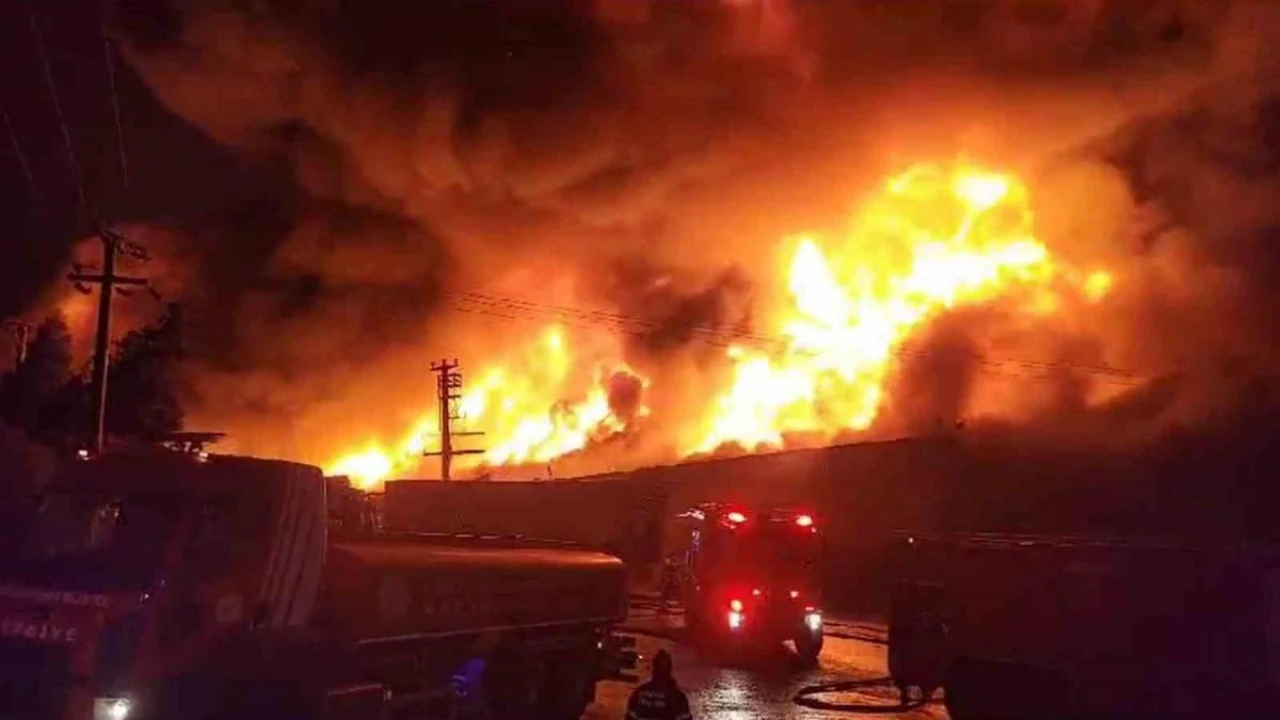 Kocaeli'de çıkan yangın tüm fabrikayı sardı, gecenin karanlığı alevlerle aydınlandı
