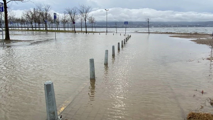 Kocaeli’nin İzmit ilçesinde etkili olan kuvvetli fırtına sebebiyle deniz taştı, sahil şeridi ve otopark su ile doldu.